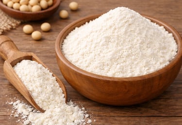 Farine de soya entière : poudre fine obtenue en moulant des fèves de soja complètes (sans séparation des composants), riche en protéines végétales, fibres et nutriments essentiels. Naturellement sans gluten, elle apporte une saveur légèrement noisettée et une texture nutritive à vos pains, pâtisseries, sauces, smoothies ou préparations salées.
