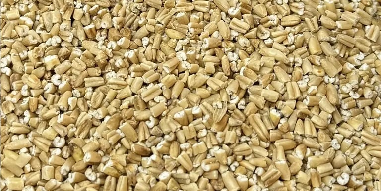 L’avoine steel-cut (ou avoine concassée) est de l’avoine entièrement décortiquée, puis coupée mécaniquement en 2 ou 3 morceaux à l’aide de lames d’acier — d’où le nom steel-cut.